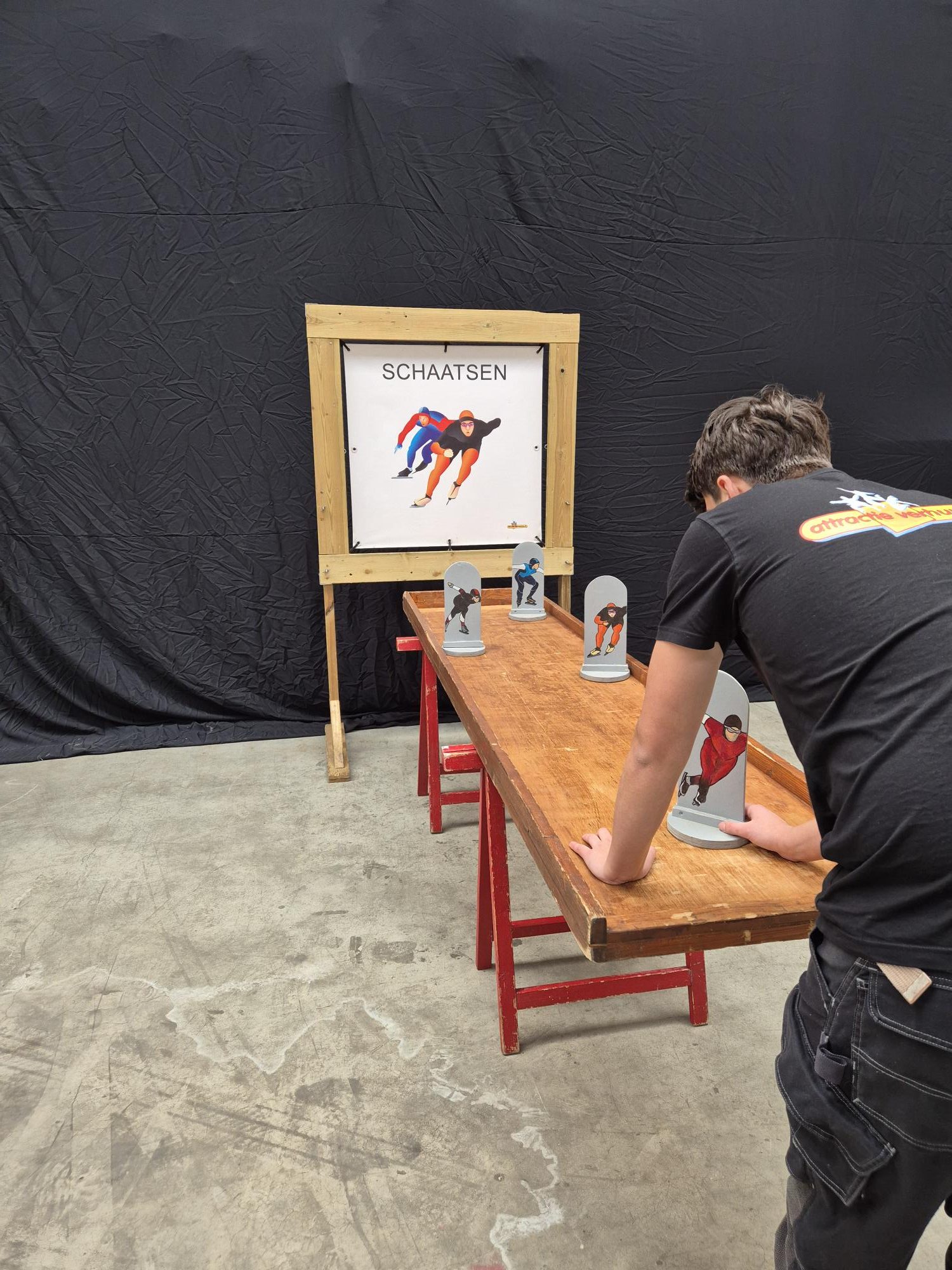 Schuif de 4 schaatsers zover mogelijk naar de eidstreep, hoe dichter des te beter maar ga  je erover dan ‘zakt de schaatser door het ijs’ en heb je geen punten.