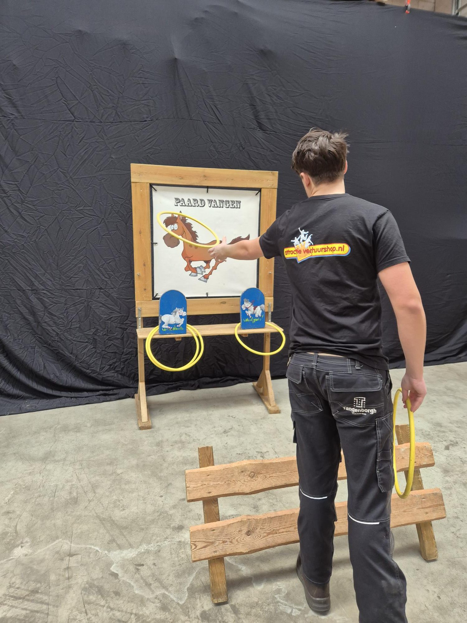 Probeer alle ringen om de 2 paarden te gooien, als je goed mikt lukt het wel.